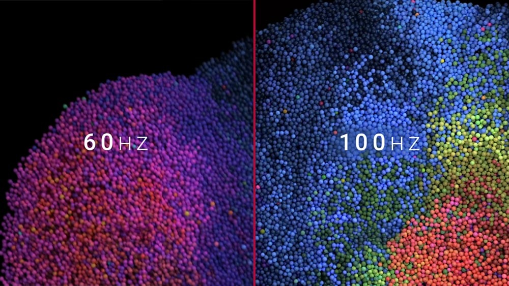 Una frequenza di refresh di 100 Hz riduce lo sfarfallio, agevola lo scorrimento e rende il movimento più fluido.