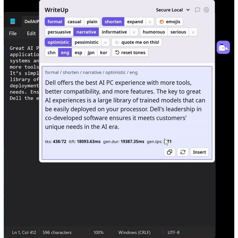 Lo strumento WriteUp di Upstage AI potenzia il tuo esclusivo stile di scrittura con un assistente AI on-device, creando contenuti specifici per il contesto in vari stili, che includono tono, lunghezza, scopo, lingua e altro ancora. Elaborando i dati in locale, WriteUp garantisce la privacy, riduce la latenza ed elimina la necessità della connettività cloud, con l'assistente AI disponibile offline per l'utilizzo in viaggio.