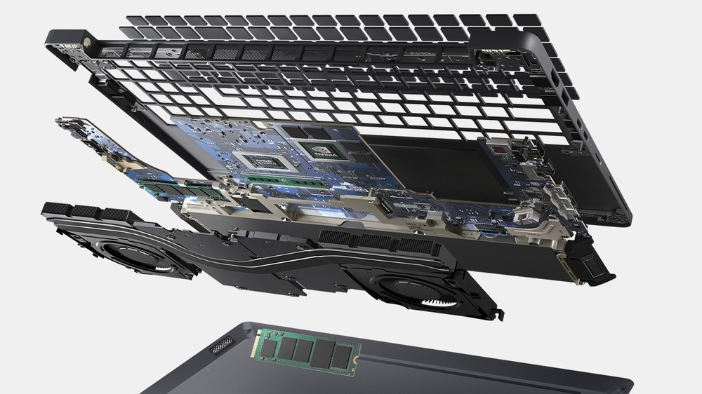 Progettato con un'ampia gamma di materiali riciclati, ad esempio fino al 50% di plastica riciclata post-consumo nella cornice, nel coperchio superiore, nel coperchio inferiore, nel telaio interno del poggiapolsi e nell'alloggiamento dell'altoparlante, il 50% di cobalto riciclato nella batteria, il 42% di plastica derivata da materiali naturali nei paracolpi inferiori e il 21% di plastica derivata da materiali naturali nel coperchio superiore e inferiore, il 28% di plastica riciclata recuperata dagli oceani nell'alloggiamento della ventola e il 20% di fibra di carbonio recuperata nel coperchio superiore e inferiore. In più, viene spedito in un packaging realizzato con il 100% di materiali riciclati o rinnovabili.
