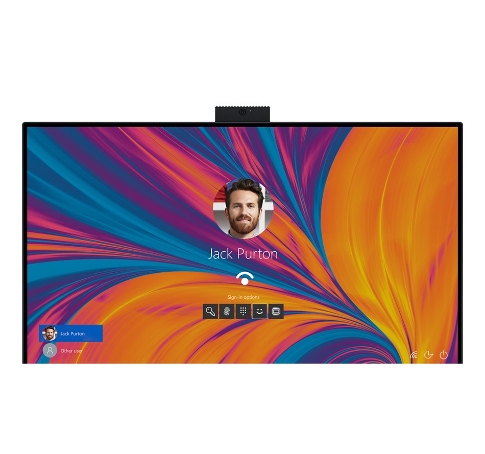 La configurazione di base include una fotocamera FHD pop-up. Passa alla fotocamera IR da 5MP opzionale con Express Sign-In e Intelligent Privacy su alcuni OptiPlex all-in-one.