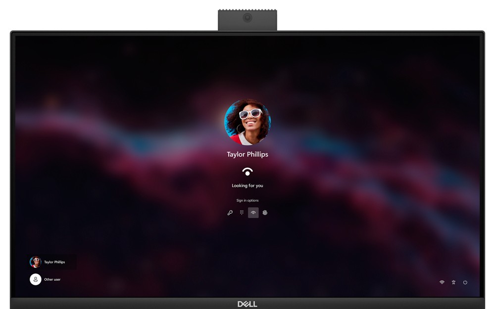 Il suono direttamente dal desktop è forte e chiaro con i microfoni con array digitale integrati e gli altoparlanti ad alte prestazioni con amplificatore intelligente. Adaptive Audio regola gli altoparlanti e i microfoni in base alla vicinanza dell'utente e Intelligent Audio fornisce la cancellazione automatica del rumore in base all'ambiente.