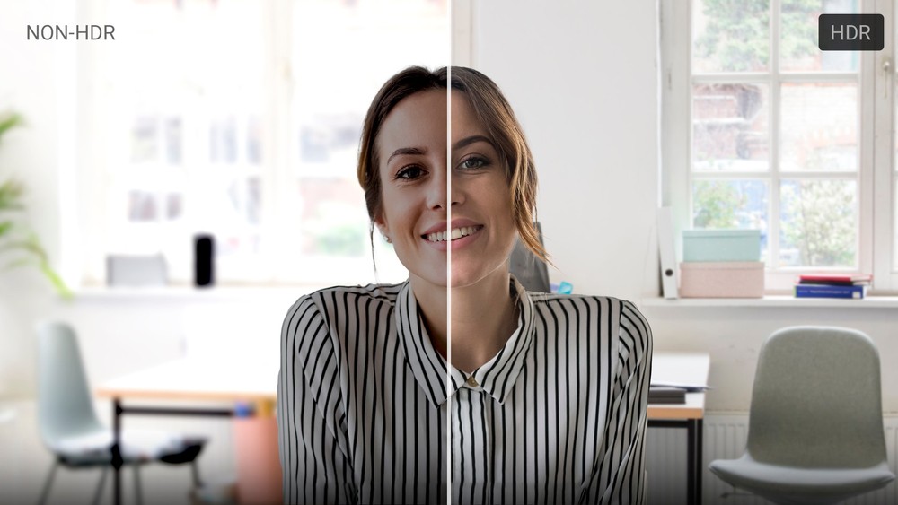 La fotocamera FHD HDR assicura un aspetto eccezionale, anche in condizioni di illuminazione ad alto contrasto. La tecnologia High Dynamic Range (HDR) regola automaticamente la nitidezza in un ambiente con qualsiasi illuminazione, tra cui bassa luminosità, luce solare diretta o condizioni di illuminazione difficili con maggiore intervallo di tonalità.