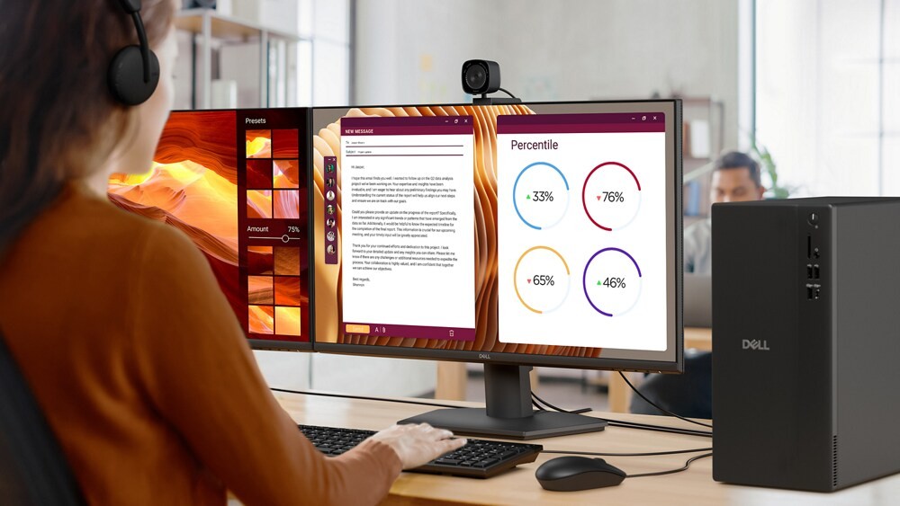 Padroneggiare il multitasking basato sull'AI per un nuovo modo di lavorare con Windows 11 Pro. Con funzionalità come Copilot in Windows, ricevi risposte più mirate, espandi le tue competenze e ottimizzi facilmente i flussi di lavoro. Windows 11 Pro sui PC Dell è dotato delle più recenti innovazioni nel campo della sicurezza e dell'AI, disponibili in tutta comodità sul tuo desktop. Approfitta oggi stesso dell'efficienza, delle prestazioni e della sicurezza migliorate dall'AI e innova per affrontare le nuove sfide del futuro.