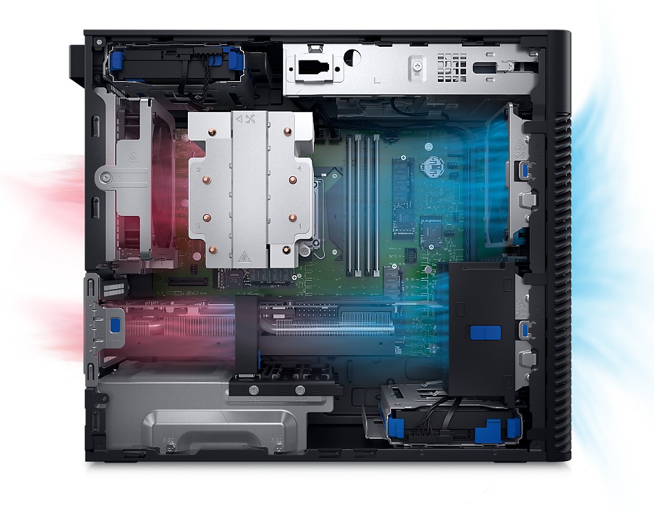 Il flusso d'aria o di liquido mantiene gli interni freschi e l'ambiente di lavoro silenzioso, così la tua creatività non viene mai interrotta. Soluzioni termiche avanzate consentono di mantenere il funzionamento del sistema al massimo delle prestazioni.