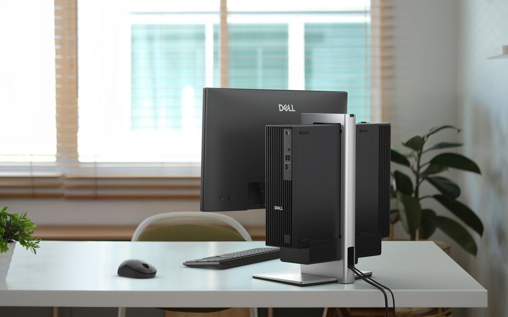 Posizionalo in verticale su una scrivania o in orizzontale per supportare un monitor e risparmiare spazio prezioso. Il filtro antipolvere opzionale protegge i componenti e riduce l'ingombro dei cavi grazie al copricavo per Dell Pro con fattore di forma ridotto opzionale.
