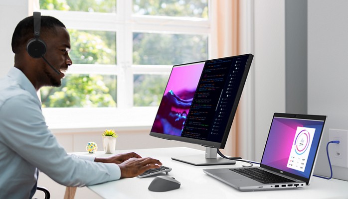 non devi far altro che premere il pulsante di accensione del monitor e, grazie alla funzionalità di sincronizzazione dell'accensione, il monitor e il PC Dell collegato si avviano anche quando il notebook è chiuso. Compatibile con determinati PC Dell.