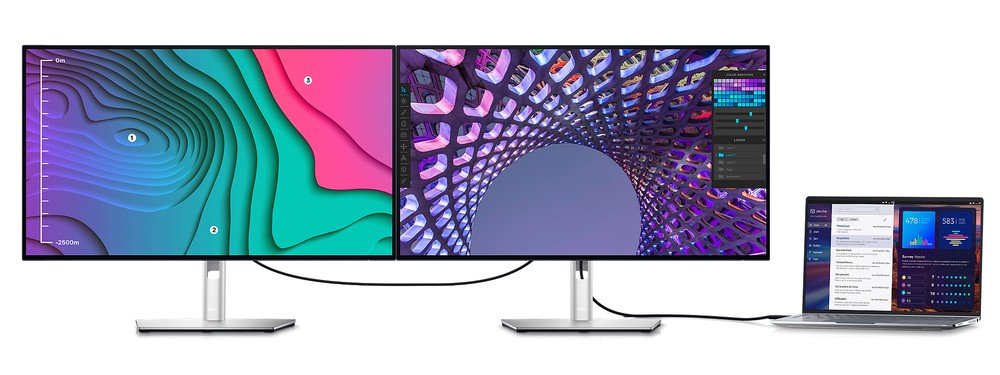 Aumenta la produttività: qualità delle immagini senza compromessi con il collegamento a margherita dei due monitor 4K. U2723QE è il primo monitor 4K da 27" al mondo che consente il collegamento a margherita di un monitor 4K aggiuntivo a risoluzione completa tramite USB-C, abilitato dalla DSC (Display Stream Compression).