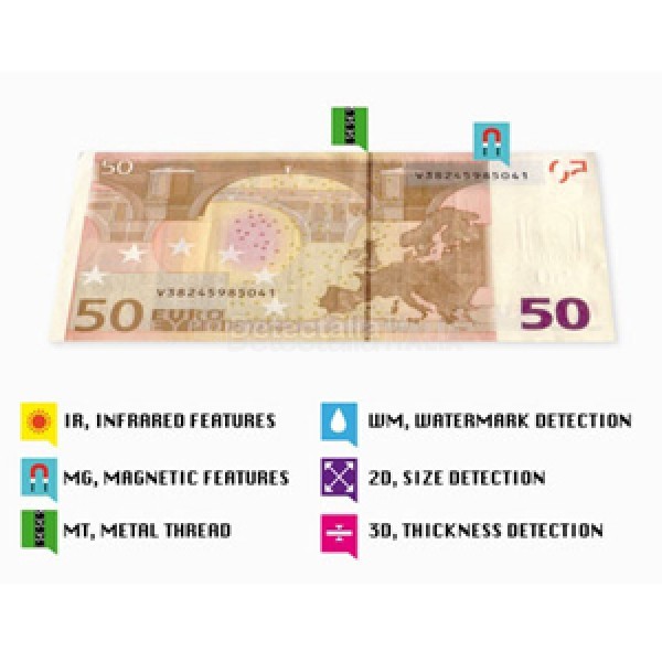 Le banconote di EUR e GBP possono essere inserite in qualsiasi direzione e lato facendovi risparmiare tempo e nel caso di rilevazione di una banconota sospetta, la macchina emette un segnale acustico.