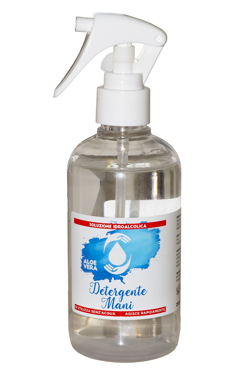 Soluzione idroalcolica detergente cosmetica per mani.Si utilizza senz'acqua, si asciuga rapidamente lasciando un gradevole profumo.Non unge, protegge a lungo.Pratico in ogni situazione quando manca acqua e sappne.Con Alcool, Glicerina e Aloe Babadensis, assicura un trattamento detergente e di pulizia delle mani.