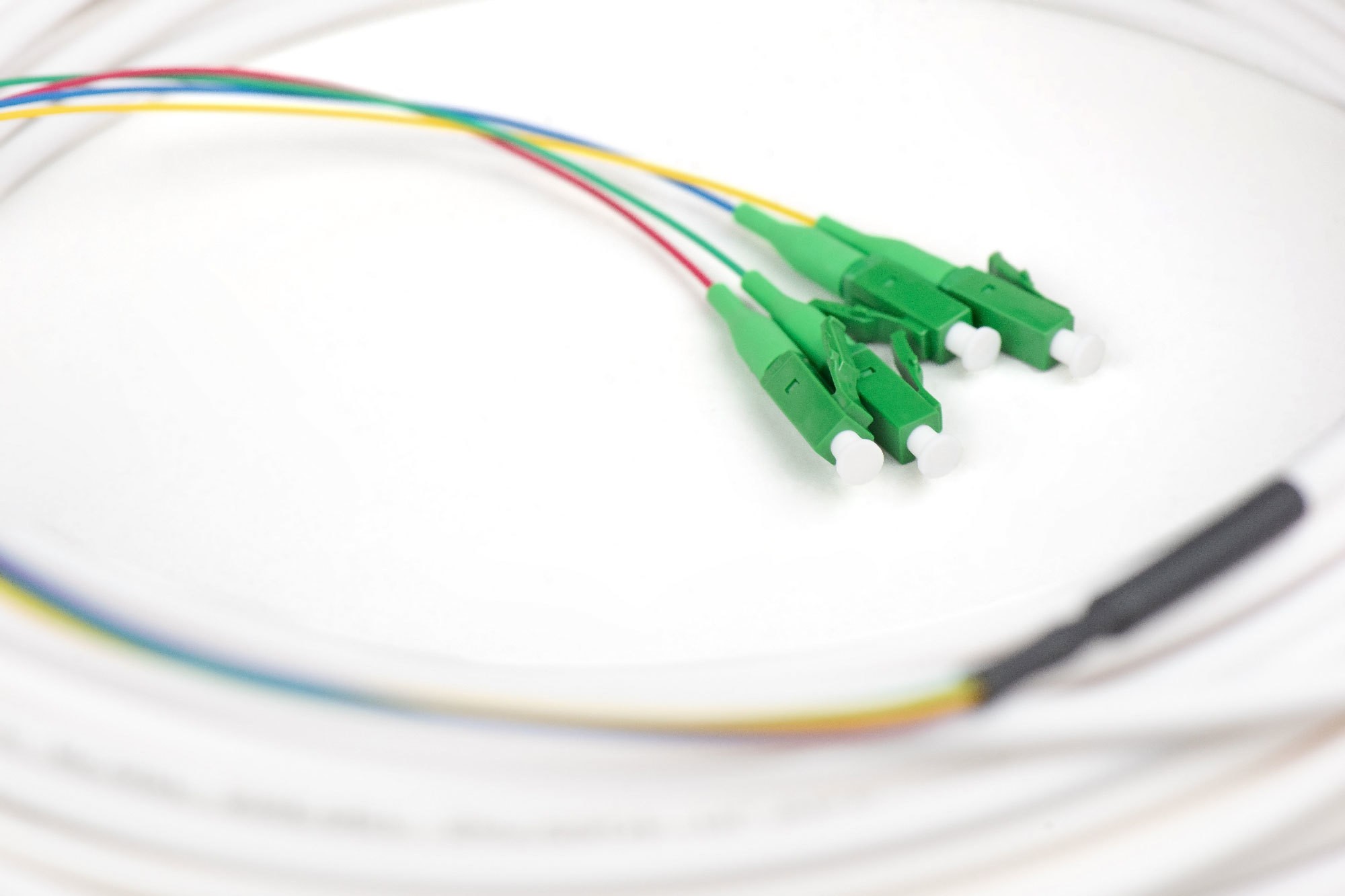 I cavi di alta qualità offrono un'opzione eccellente per le connessioni in fibra ottica nel livello di rete previsto 4. L'installazione è facilitata dai connettori preassemblati per tutte e 4 le fibre a un'estremità del cavo.