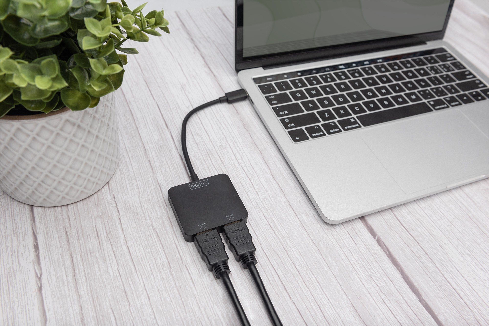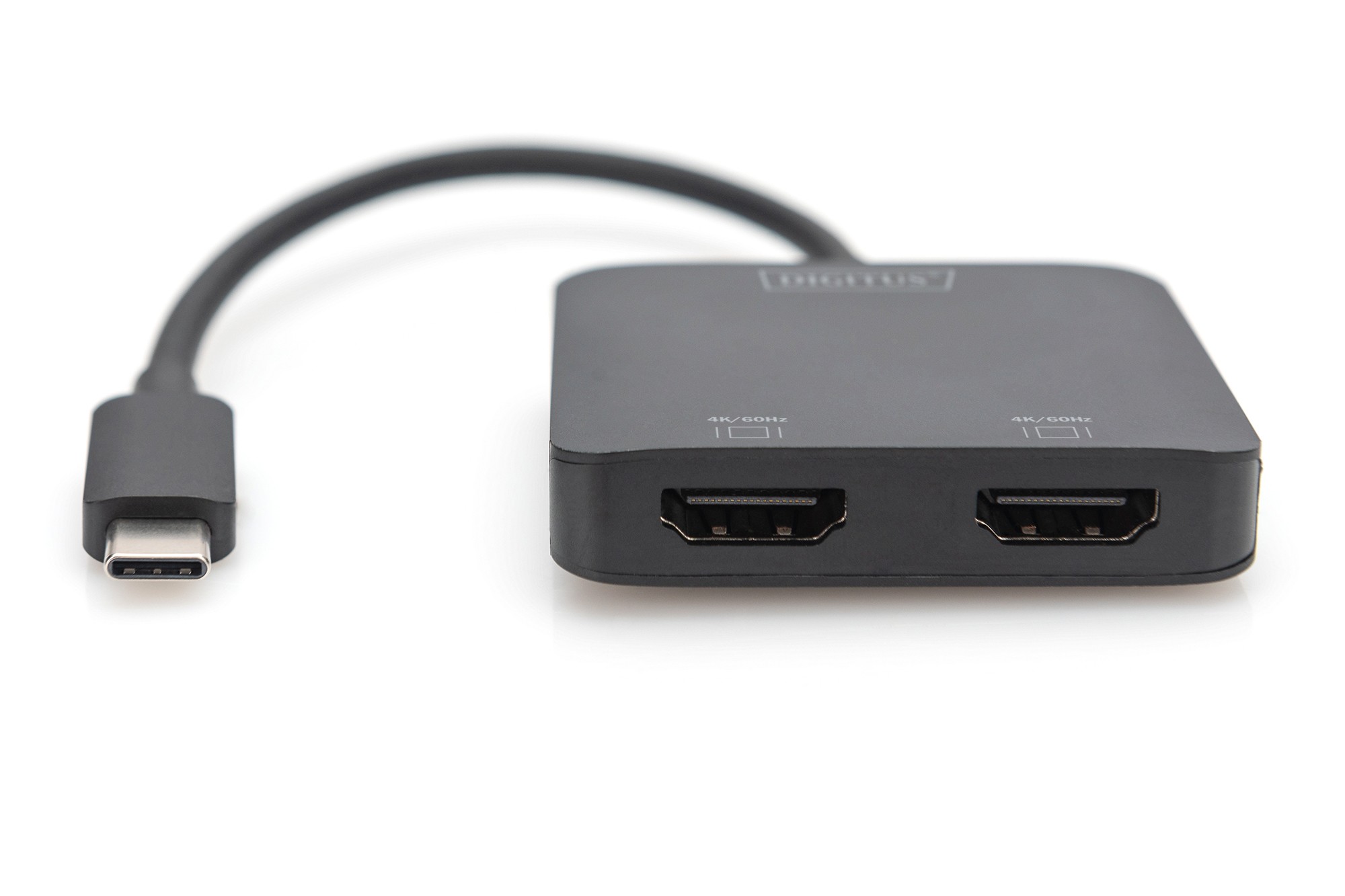 Digitus Hub video MST a 2 porte (USB-C™ -> 2 HDMI), HDMI, 2x HDMI, 3840 x 2160 Pixel, Nero, Acrilonitrile butadiene stirene (ABS), 4K Ultra HD