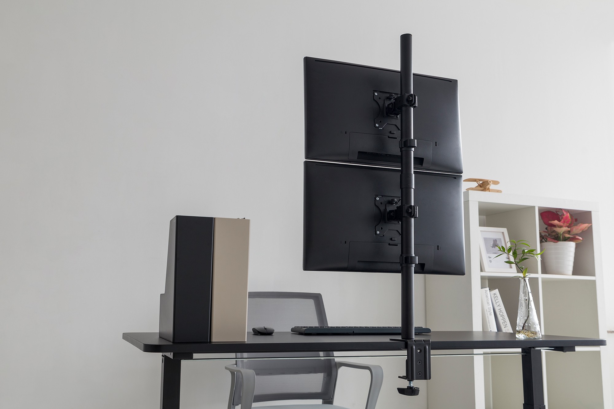 Il supporto da tavolo offre la possibilità di montare due monitor fino a 32" / 8 kg in verticale, uno sopra l’altro - Adatto per monitor curvi fino a 32" / 8 kg max. - Compatibilità VESA: 75x75, 100x100 - La funzione a sgancio rapido (chiusura rapida) consente di fissare o rimuovere velocemente gli schermi - Posizione perfetta del monitor dal punto di vista ergonomico per qualsiasi fisionomia - I monitor sono orientabili, inclinabili, girevoli e regolabili in altezza - Gestione cavi integrata: per un ambiente di lavoro organizzato e ordinato - Due opzioni di montaggio: sia un aggancio al tavolo che un’asta di passante inclusi in dotazione Il supporto da tavolo offre la possibilità di montare due monitor fino a 32" / 8 kg in verticale, uno sopra l’altro. Il supporto permette l’orientamento, la rotazione e l’inclinazione dei monitor. La funzione a sgancio rapido (chiusura rapida) consente di fissare o rimuovere velocemente gli schermi. Due opzioni di montaggio: sia un aggancio al tavolo che un’asta di passante inclusi in dotazione.