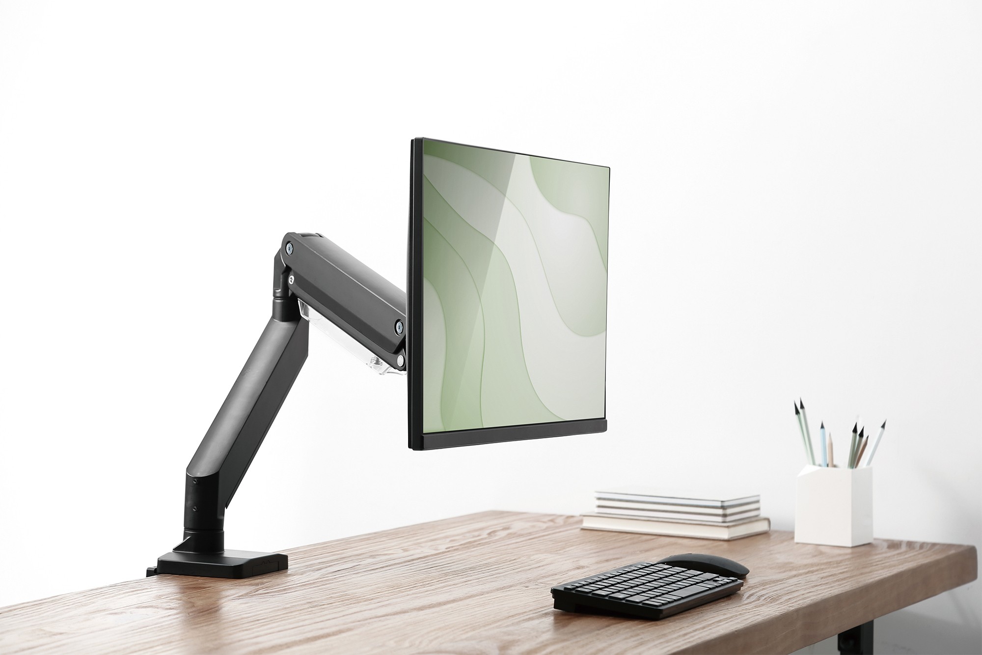 Il supporto per scrivania consente di orientare a piacimento monitor fino a 35". È possibile orientare, inclinare e ruotare lo schermo. La molla a gas integrata facilita la regolazione in altezza. Con funzione Quick Release.