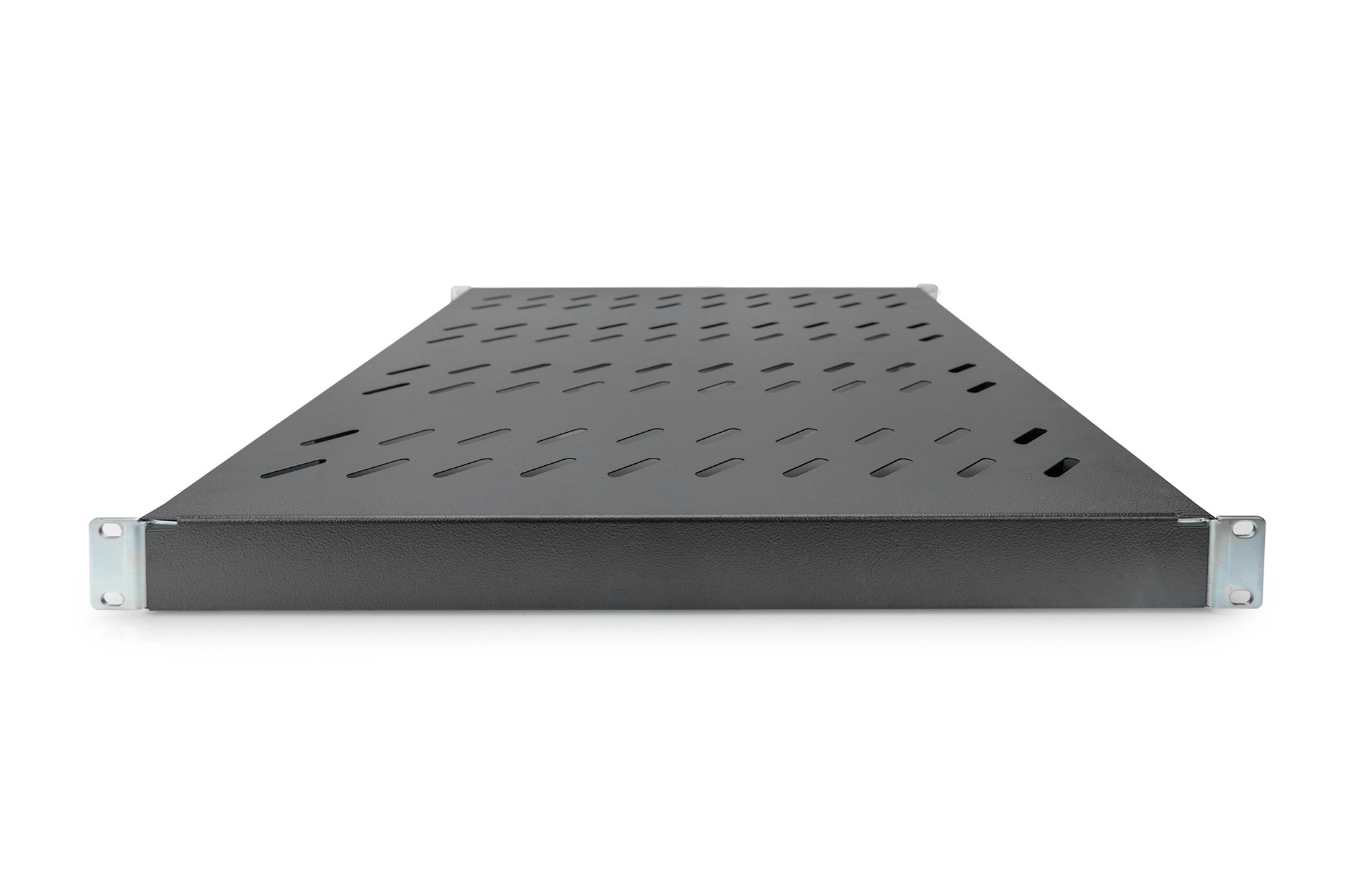 Digitus Ripiano con rotaie per il montaggio variabili per installazione fissa su armadi da 483 mm (19"), Mensola regolabile, Nero, Acciaio, 50 kg, 1U, Turchia