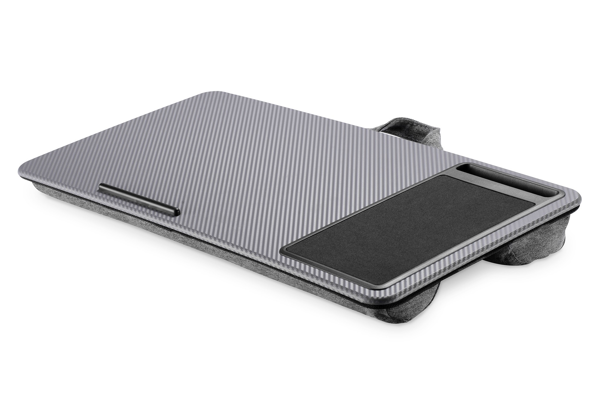 Consente di lavorare ovunque, con tappetino per mouse e supporto per smartphone - Adatto per notebook fino a 17" - Tappetino per mouse integrato - Supporto per smartphone integrato - Morbida imbottitura sul lato inferiore - Adatto come rialzo da utilizzare sulla scrivania - Il supporto per notebook sul lato inferiore offre sostegno anche in una posizione inclinata - Pratica impugnatura Il notebook desk consente di lavorare ovunque offrendo la massima flessibilità. Ha un tappetino per mouse e un supporto per smartphone. Il supporto nel lato inferiore evita che il notebook scivoli anche quando la postura è inclinata. La morbida imbottitura sul lato inferiore offre un sostegno confortevole e stabile.