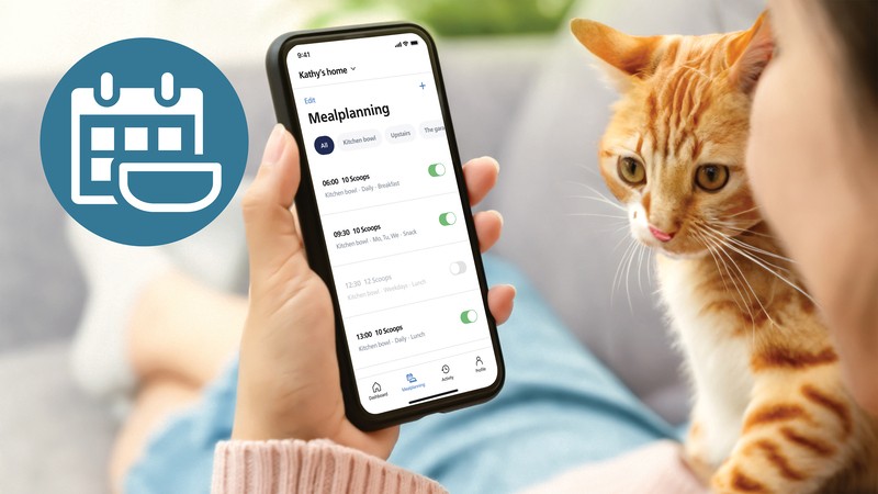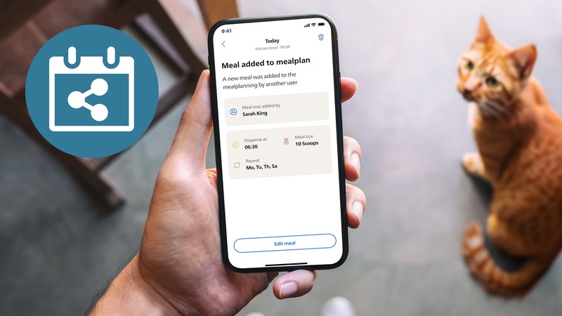 Monitora la pianificazione dei pasti dei gatti con amici e familiari grazie alla nostra app.