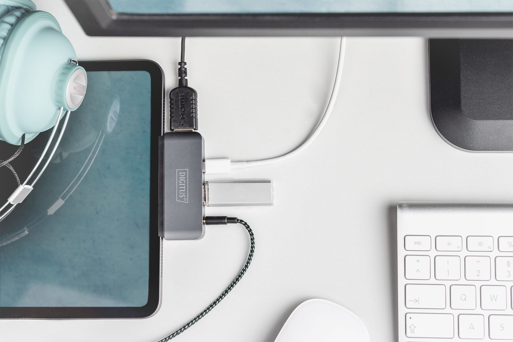 Estendete le capacitа del vostro tablet, smartphone e notebook con 4 ulteriori interfacce - HDMI®, USB-C™, USB 3.0 & audio