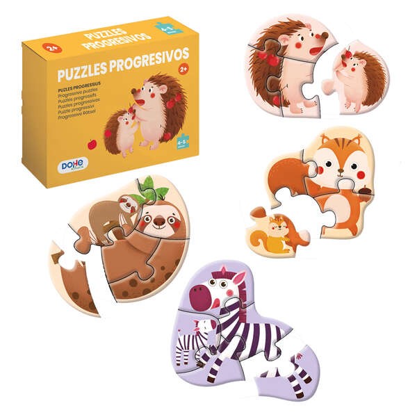 Puzzle progressivo pensato per l'apprendimento dei più piccoli di casa. Realizzato in doppio strato di cartone con uno strato intermedio di rinforzo in compensato. Con colori accattivanti e disegni che stimolano la fantasia e il ragionamento in modo divertente, componendo puzzle con un numero maggiore di pezzi. A partire da 2 anni.