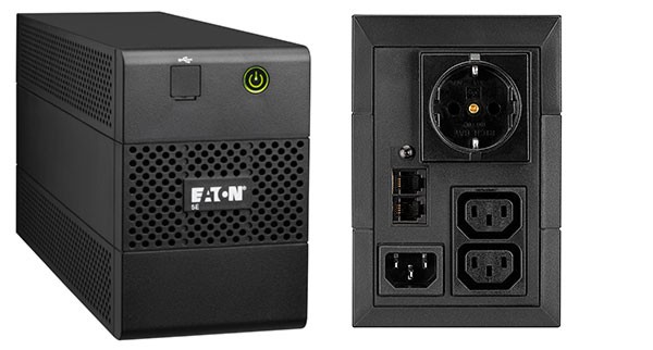 Eaton 5E 850I USB DIN. Topologia UPS: A linea interattiva, Potenza in uscita: 0,85 kVA, Potenza in uscita: 480 W. Tipo di uscita AC: Accoppiatore C14, Quantità prese AC: 3 presa(e) AC. Fattore di forma: Tower, Colore del prodotto: Nero, Certificazione: CE, CB