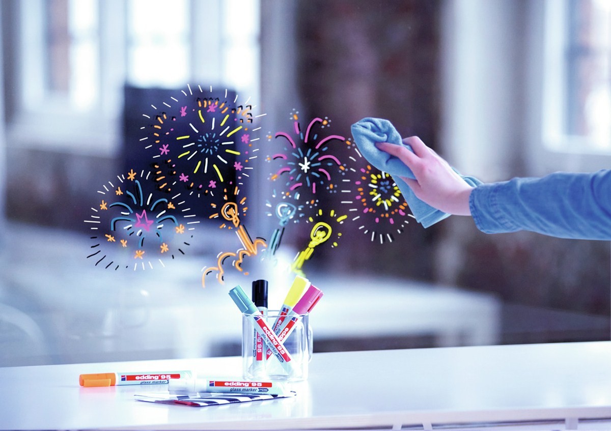 Edding 95 Glass, 4 pz, Nero, Blu, Arancione, Rosa, Tipo di punta, Multicolore, Plastica, 1,5 mm