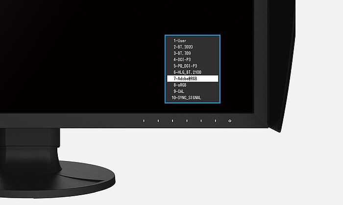 Modalità ottimizzate per gli spazi colore DCI-P3, BT.709 e BT.2020 vengono impostate e calibrate con cura in fabbrica e assicurano valori di gamma corretti. Sono disponibili inoltre modalità di colore per PQ (DCI e BT.2100) e HLG (BT.2100) per la visualizzazione di contenuti HDR. L'impostazione della luminosità per ogni preset può essere regolata e ricalibrata in maniera comoda e flessibile grazie al sensore di calibrazione integrato.