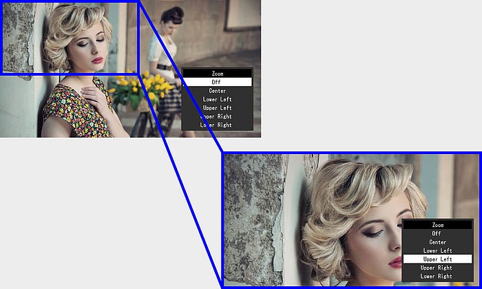 Per analizzare agevolmente anche il più piccolo dettaglio è possibile selezionare direttamente l'ingrandimento nel menu del monitor e zoomare nelle diverse porzioni dello schermo.
