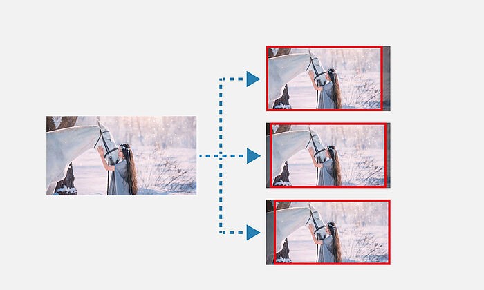 Ideale per sottotitoli e immagini critiche. Grazie alla funzione Safe Area Marker puoi evidenziare aree della scena che sono rappresentate con un rapporto d'aspetto diverso e ti consente di verificare immediatamente se i sottotitoli, i testi o gli elementi importanti dell'immagine sono posizionati entro i limiti del visibile. E la contrassegnazione può essere personalizzata con colori, dimensioni e rapporto d’aspetto diversi.