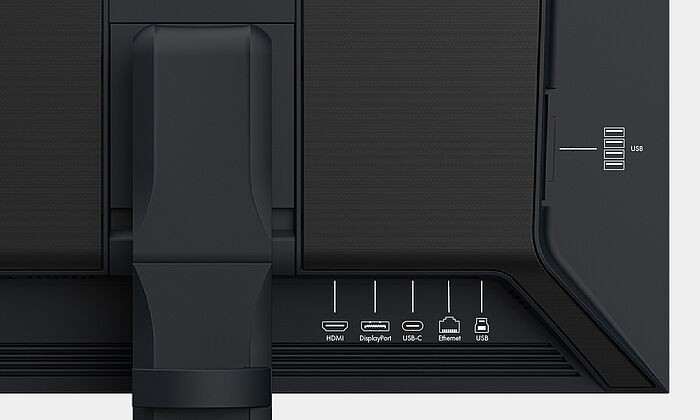 Non è mai stato così facile utilizzare due PC con un solo mouse e una sola tastiera. Grazie allo switch KVM (Keyboard Video Mouse) integrato nel ColorEdge CG2700X è possibile gestire le 2 porte USB Upstream (USB-C e USB-B). Il monitor collega direttamente il mouse e la tastiera al computer sorgente attualmente in uso. Per esempio, un PC desktop e un portatile o un PC di lavoro e un PC di casa possono essere utilizzati con la stessa combinazione di monitor, mouse e tastiera. La commutazione viene fatta comodamente dall’utente tramite il pulsante posto sulla parte anteriore del monitor. Questo assicura un lavoro fluido e uno spazio di lavoro ordinato.