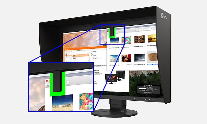 Il modello CG2700X è munito di un evoluto sensore che permette una calibrazione automatica davvero veloce, continuando a lavorare in applicazioni non critiche per il colore. Nel frattempo il monitor si calibra da solo. La sonda di calibrazione richiede poco spazio sullo schermo e non infastidisce. La calibrazione può essere programmata a intervalli prestabiliti, anche quando il computer è spento o senza essere collegato al monitor.