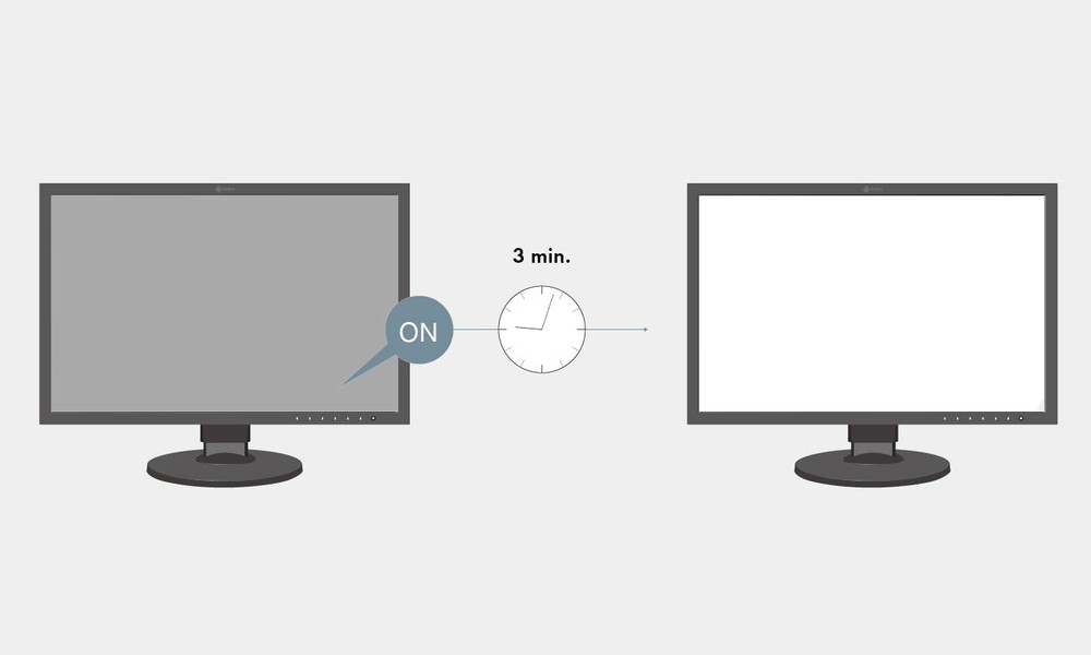 Un monitor tradizionale richiede circa 30 minuti per stabilizzare la luminosità, la cromaticità e i valori tonali. Il ColorEdge CG2700X impiega solo tre minuti per stabilizzare la sua performance. In tal modo gli utenti possano essere certi di ottenere parametri stabili subito dopo l'accensione del monitor.