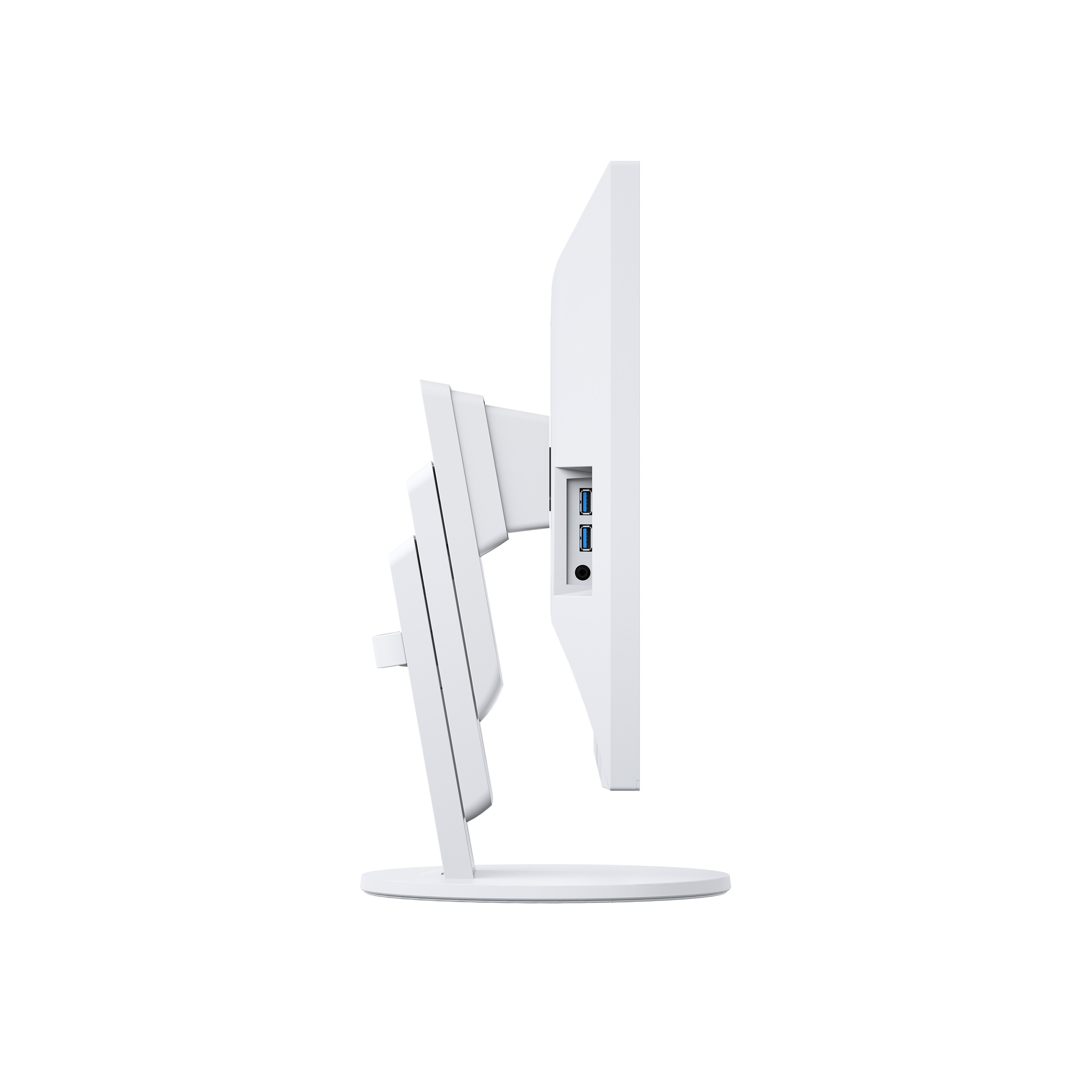 In nero elegante o in bianco raffinato - il monitor si presenta sobrio e curato in tutti i dettagli, anche in quelli estetici: la cornice praticamente assente presenta uno spessore di 1 su tre lati e 6.4 nel lato inferiore. Un design minimalista e salvaspazio che non distrae l’utente durante il lavoro e che si presta molto bene a configurazioni con display affiancati.