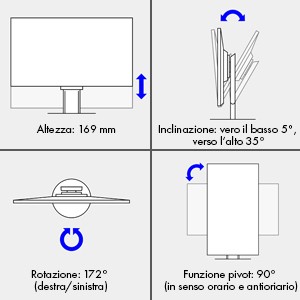| Certificazione | CE, UKCA, CB, TÜV/GS, TÜV/Ergonomics (including ISO 9241-307), TCO Certified Generation 9, EPEAT 2018 (US), TÜV/Blue Low Light Content, TÜV/Flicker Free, RCM, cTÜVus, FCC-B, CAN ICES-3 (B), TÜV/S, PSE, VCCI-B, EPA ENERGY STAR, RoHS, WEEE, China RoHS, CCC, BIS, BSMI |
