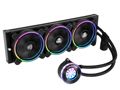 Enermax LIQFUSION 360. Tipo: Set refrigerante, Velocità (minima) di rotazione: 500 Giri/min, Velocità (massima) di rotazione: 2000 Giri/min, Rumorosità (velocità bassa): 14 dB, Rumorosità (velocità alta): 28 dB, flusso d'aria massimo: 102,17 pdc/min, pressiore dell'aria minima: 0,673 mmH2O, pressione dell'aria massima: 6,28 mmH2O. Colore del prodotto: Nero