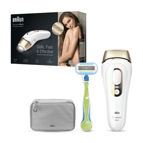 Braun Silk-expert Pro Nuovo 5 PL5014 Epilatore Luce Pulsata, IPL, Epilazione Definitiva. Colore del prodotto: Bianco, Oro, Tecnologia di rimozione peli: Luce pulsata intensa (IPL), Aree del corpo: Addome, Dietro la coscia, Natiche, Avancoscia, Ascelle, Esterno coscia, Esterno degli arti superiori. Alimentazione: AC, Tensione di ingresso AC: 100 - 240 V. Peso: 1,11 kg. Tipo di imballo: Scatola, Larghezza imballo: 97,5 mm, Profondità imballo: 276 mm. Larghezza scatola principale: 21,1 cm, Lunghezza del cartone principale: 29,6 cm, Altezza scatola principale: 22 cm