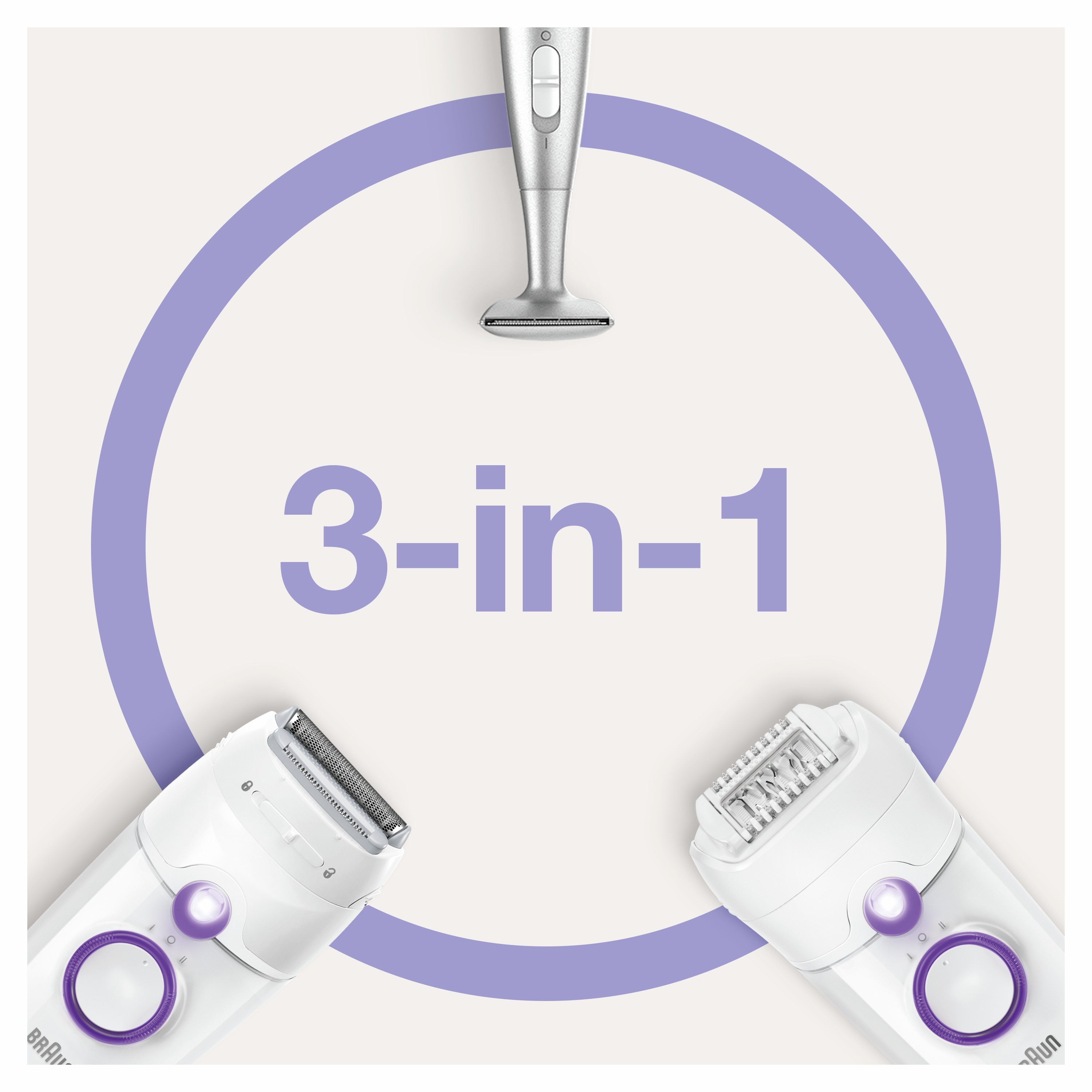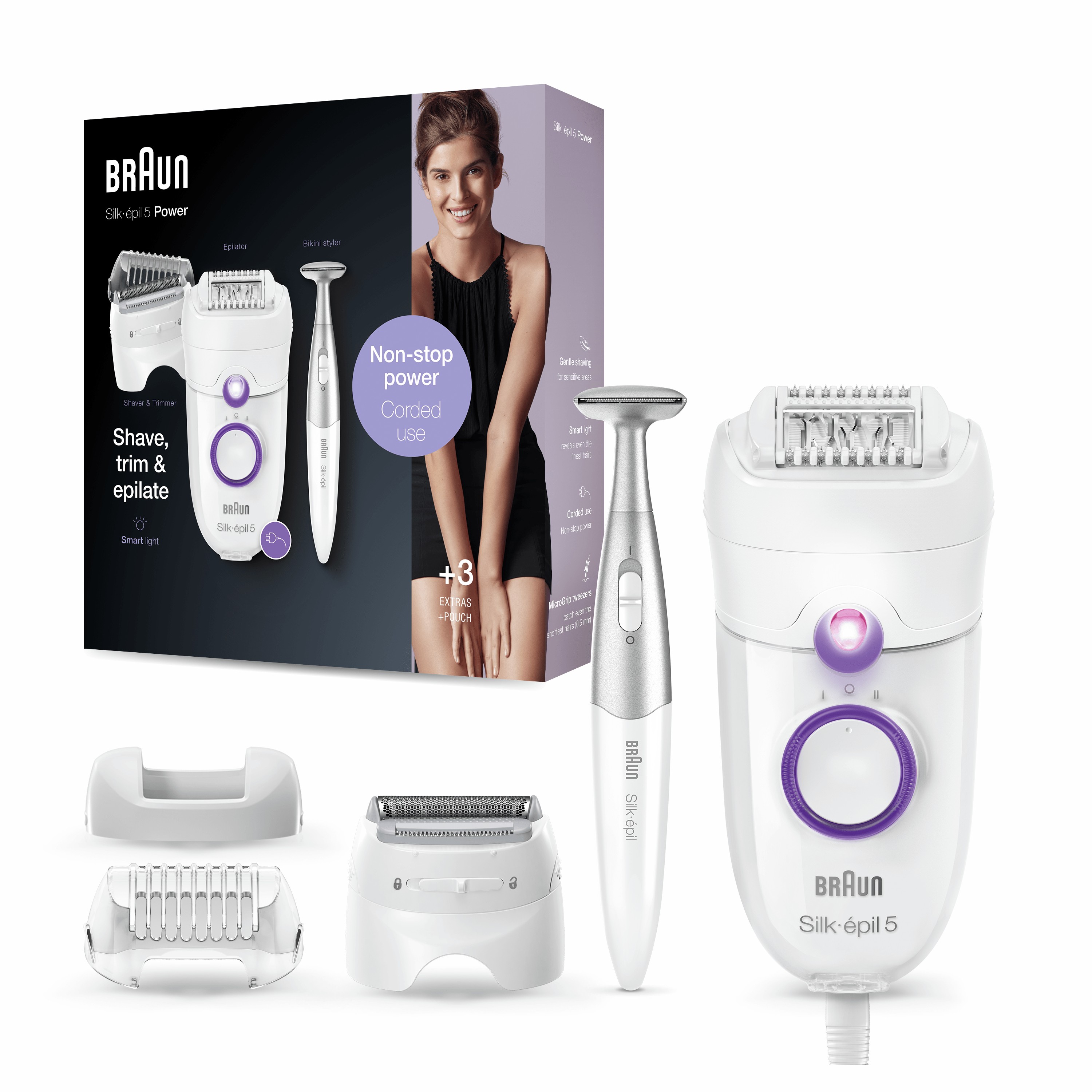 Braun Silk-épil 5 Silk-?pil 5-825 Power Epilatore Donna Primi Utilizzi Delicato Con Filo Senza Interruzioni, Testina Radente, Cappuccio Regolator, Bianco, Porpora, 28 pinzette, MicroGrip, Rasatura, Germania, 0,5 mm