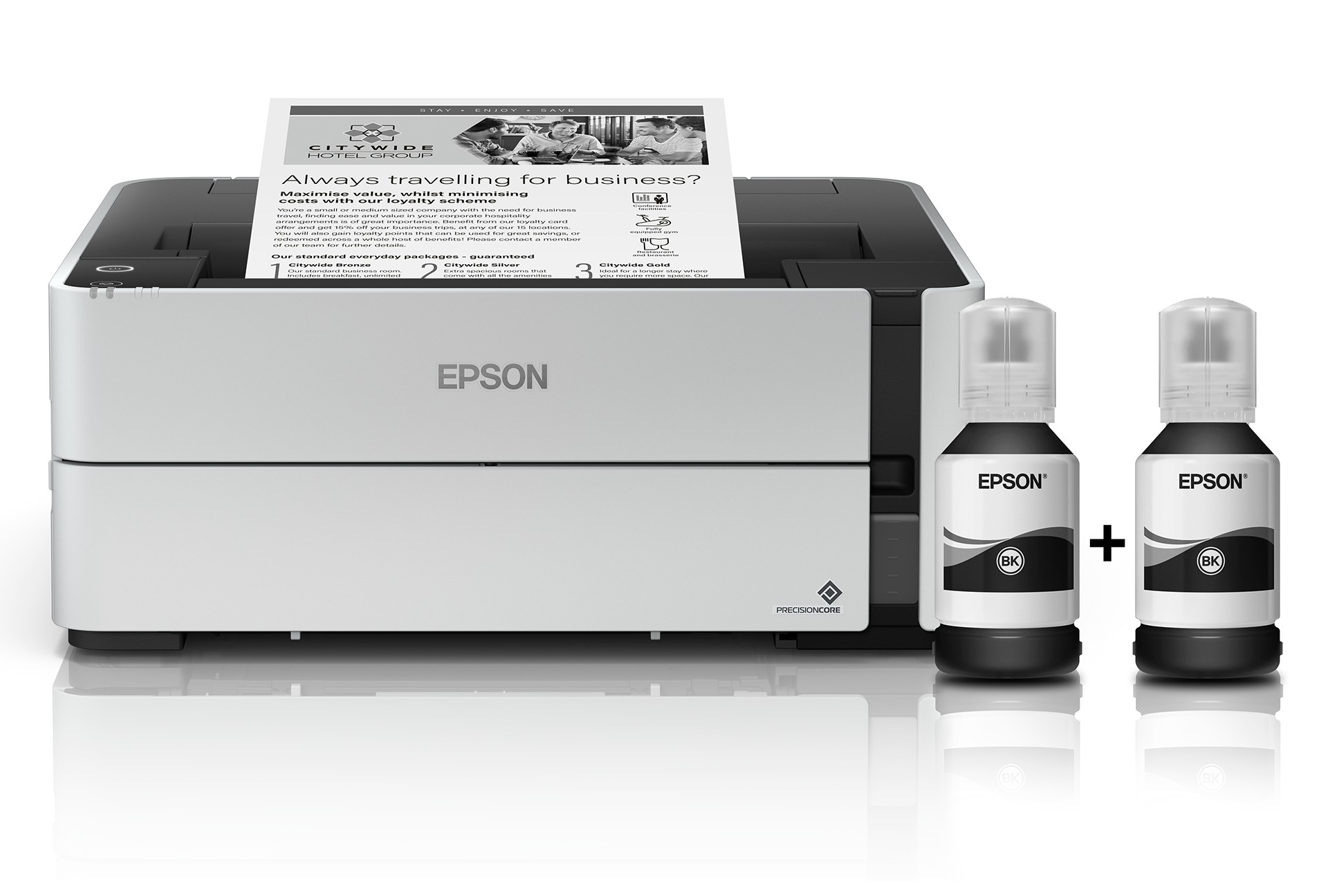 Riduci i costi di stampa EcoTank è una stampante conveniente e sostanzialmente diversa dalle stampanti laser. È infatti dotata di un grande serbatoio di inchiostro ricaricabile con i flaconi inclusi nell'imballo, anziché con il toner. Stampa fin da subito migliaia di pagine, offrendo un risparmio non solo sui costi di stampa, ma anche sul tempo, in quanto non occorre più sostituire il toner di frequente. Sostituzioni di inchiostro a basso costo Oltre a ridurre il numero e la frequenza delle ricariche, potrai risparmiare oltre il 90% sul costo per pagina grazie ai flaconi di inchiostro di ricarica2. Affidabilità Per garantirti una maggiore tranquillità di utilizzo, ogni stampante monocromatica EcoTank offre la garanzia di un anno o fino a 100.000 pagine. Risparmio di tempo Grazie al sistema con serbatoi di inchiostro, puoi dimenticare il problema di sostituire il toner. La stampa è più rapida per l'assenza di tempi di riscaldamento e per la velocità di 20 ppm3. Risparmio di energia Una stampante monocromatica EcoTank consente di ridurre i consumi energetici e i costi di stampa. Rispetto alle stampanti laser monocromatiche, offre un risparmio fino al 95%4 in termini di consumi energetici. Funzionalità efficienti per l'ufficio Scopri la testina di stampa PrecisionCore, apprezzata per la velocità, la qualità, l'affidabilità e l'efficienza. Il vassoio da 250 fogli consente di sostituire la carta con meno frequenza, mentre la stampa fronte/retro automatica riduce il consumo di fogli. Soluzioni di connettività Carica le scansioni sul Cloud e stampa da qualsiasi punto dell'ufficio grazie alla connettività Wi-Fi e alle app di stampa da mobile gratuite di Epson6. Questo modello è dotato di connettività Ethernet per una connessione rapida e di alta qualità.