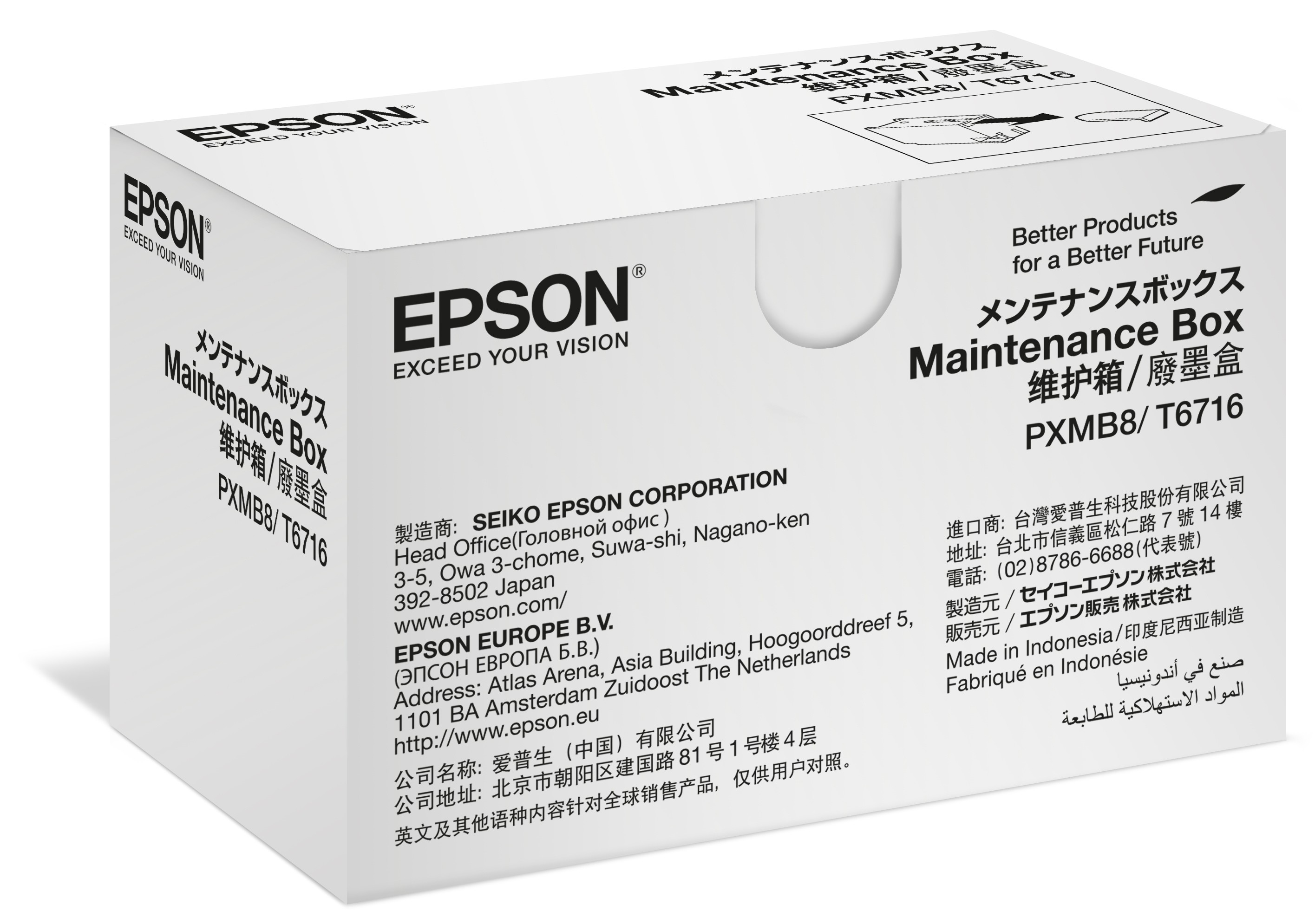 Epson Maintenance box. Colore del prodotto: Nero, Paese di origine: Indonesia, Compatibilità marca: Epson. Quantità per pacco: 1 pz, Peso dell'imballo: 0,18 g, Larghezza imballo: 81 mm. Quantità per pallett: 1050 pz, Quantità per pallet (UK): 1050 pz, Quantità per cartone principale: 50 pz
