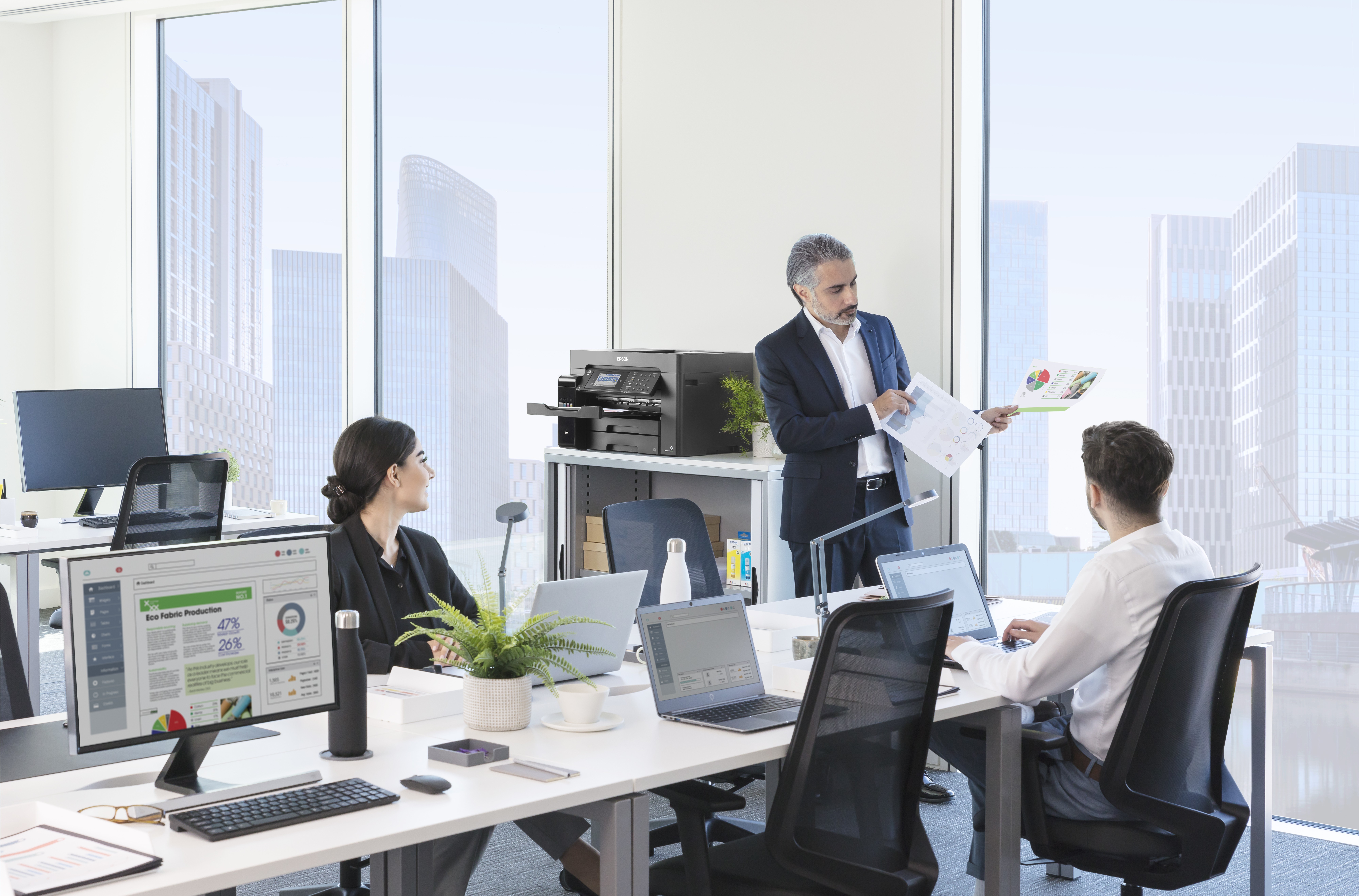 Riducendo al minimo le ricariche, questa stampante EcoTank può stampare migliaia di pagine prima di aver bisogno di altro inchiostro, mentre i due vassoi carta A3 offrono una capacità di 500 fogli. Liberati dal caricamento manuale delle pagine con una generosa alimentazione posteriore da 50 fogli e un alimentatore automatico di documenti (ADF) A3.