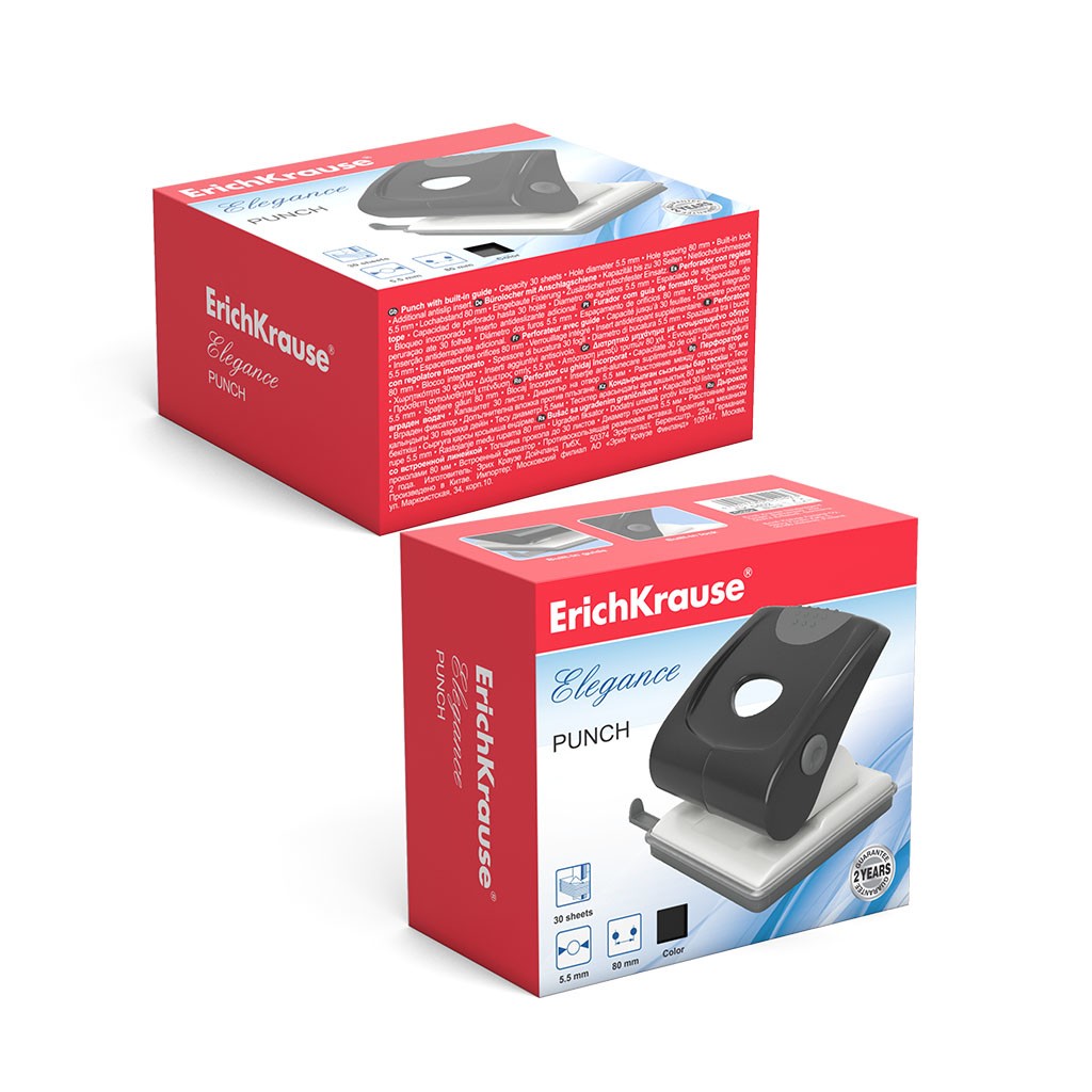ErichKrause Elegance. Capacità di perforazione: 30 fogli, Colore del prodotto: Nero, Colore della base: Nero. Larghezza: 112 mm, Profondità: 102 mm, Altezza: 95 mm. Larghezza imballo: 120 mm, Profondità imballo: 30 mm, Altezza imballo: 108 mm