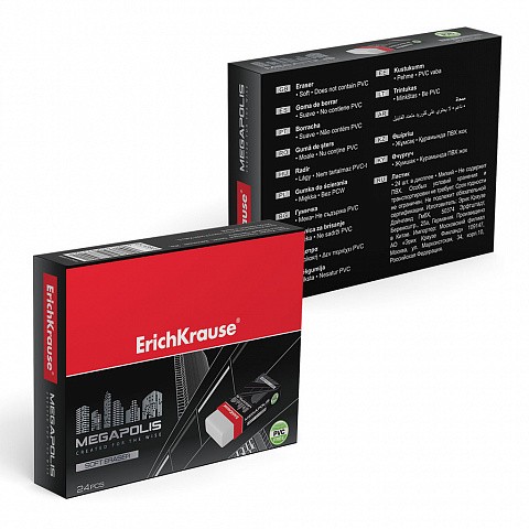 ErichKrause MEGAPOLIS. Materiali: Gomma termoplastica (TPR), Colore del prodotto: Bianco, Pubblico di destinazione: Adulti e bambini. Larghezza: 22 mm, Profondità: 13 mm, Altezza: 50 mm. Larghezza imballo: 134 mm, Profondità imballo: 104 mm, Altezza imballo: 25 mm. Paese di origine: Cina. Quantità per pacco: 24 pz