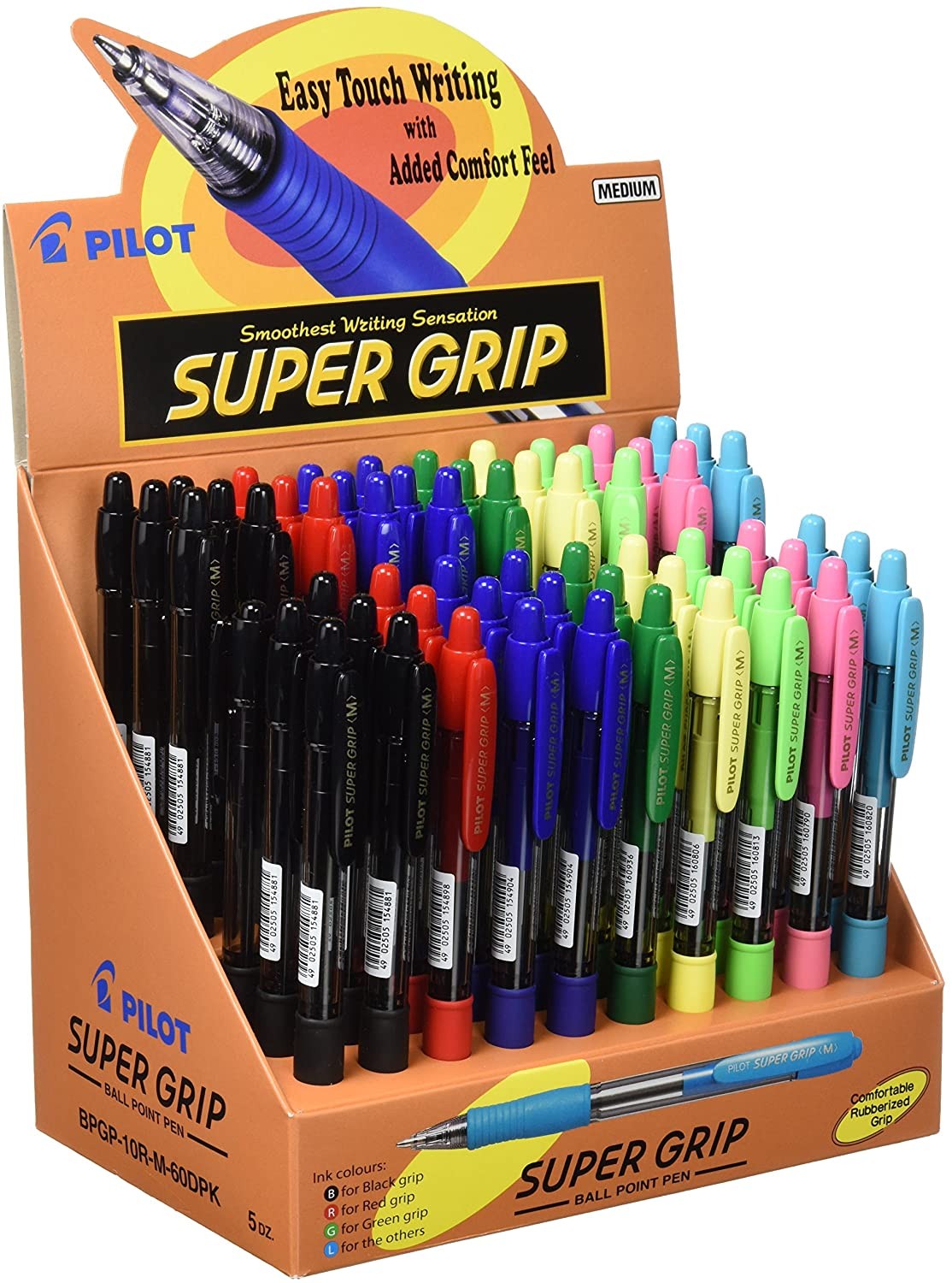 Espositore pilot di 60 penne a sfera retrattili SuperGrip - Punta rotonda da 1,0 mm - Linea da 0,27 mm - Inchiostro a olio - Impugnatura ergonomica - Colore