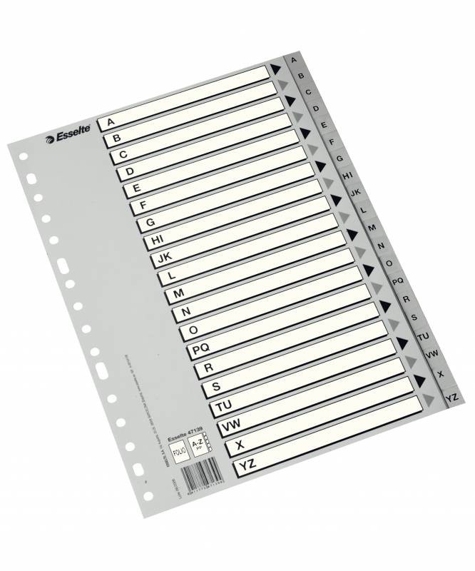 Recensioni Esselte Alfabeti in plastica con copertina Folio - PP - Tipo AZ - Indice in cartone: cartoncino bianco e nero - Grigio tipo AZ - Materiale PP - Formato Folio - Multiforo - Presentazione in busta individuale