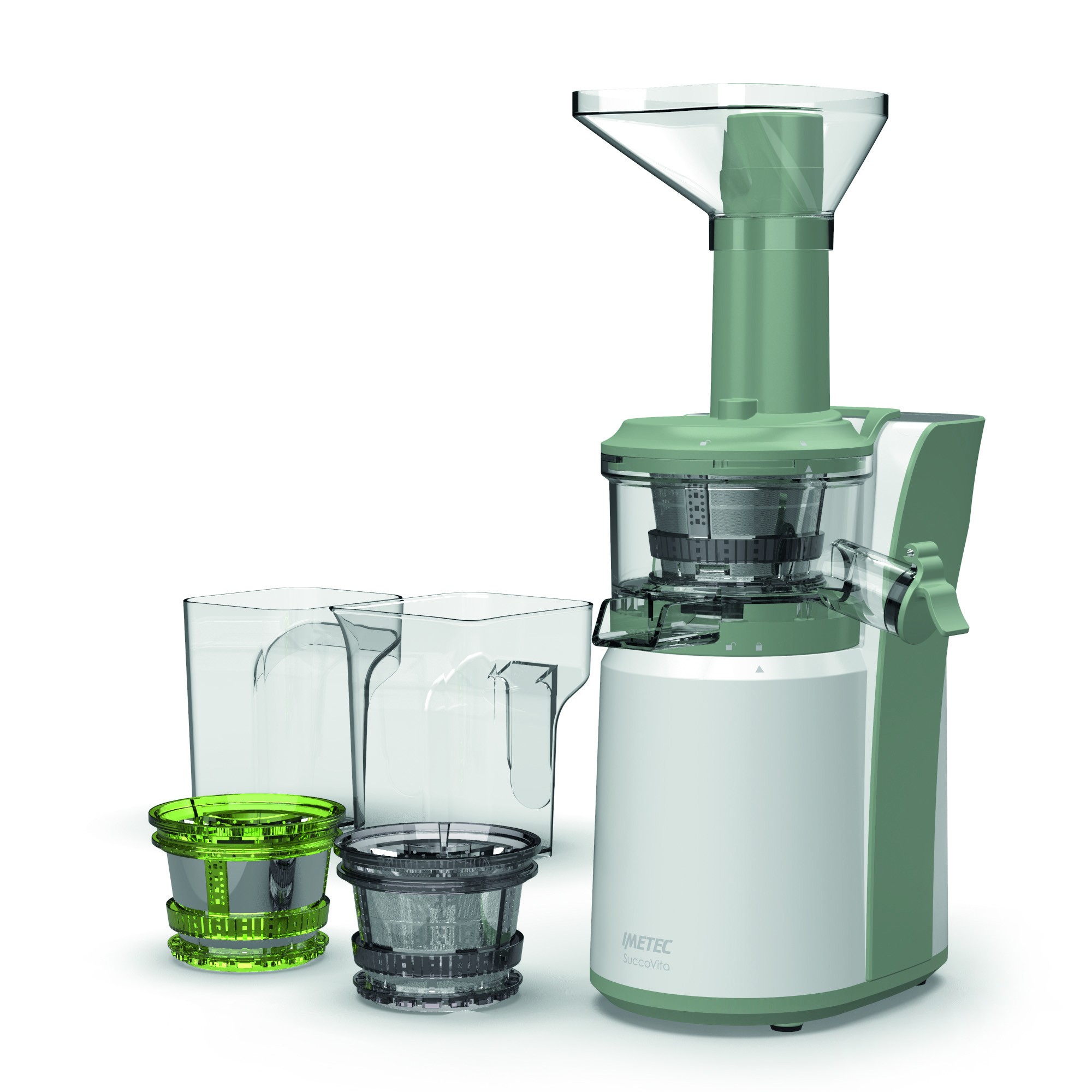 Succhi, sorbetti e concentrati di energia con la massima facilità. Estrattore di succo a freddo IMETEC Succovita con spremitura a 50 giri/min. Massima facilità di utilizzo e pulizia in soli 2 minuti.