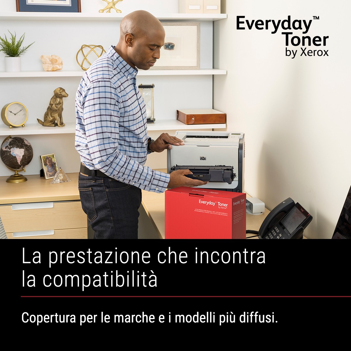 Un impegno di responsabilità ambientale rappresenta l’approccio migliore dal punto di vista commerciale, per il suo impatto positivo sul pianeta, sull’azienda e sulle persone. Il Toner rigenerato Everyday di Xerox produce un’impronta di carbonio minore rispetto a qualsiasi altra cartuccia di toner a singolo utilizzo. Perché non si dovrebbe essere obbligati a scegliere tra fare la propria parte per ridurre l’impatto sull’ambiente e il costo del toner. E la compatibilità con le marche di stampanti più diffuse ti permette di usufruire dell’impareggiabile qualità e impegno ambientale di Xerox indipendentemente dalla stampante che utilizzi.