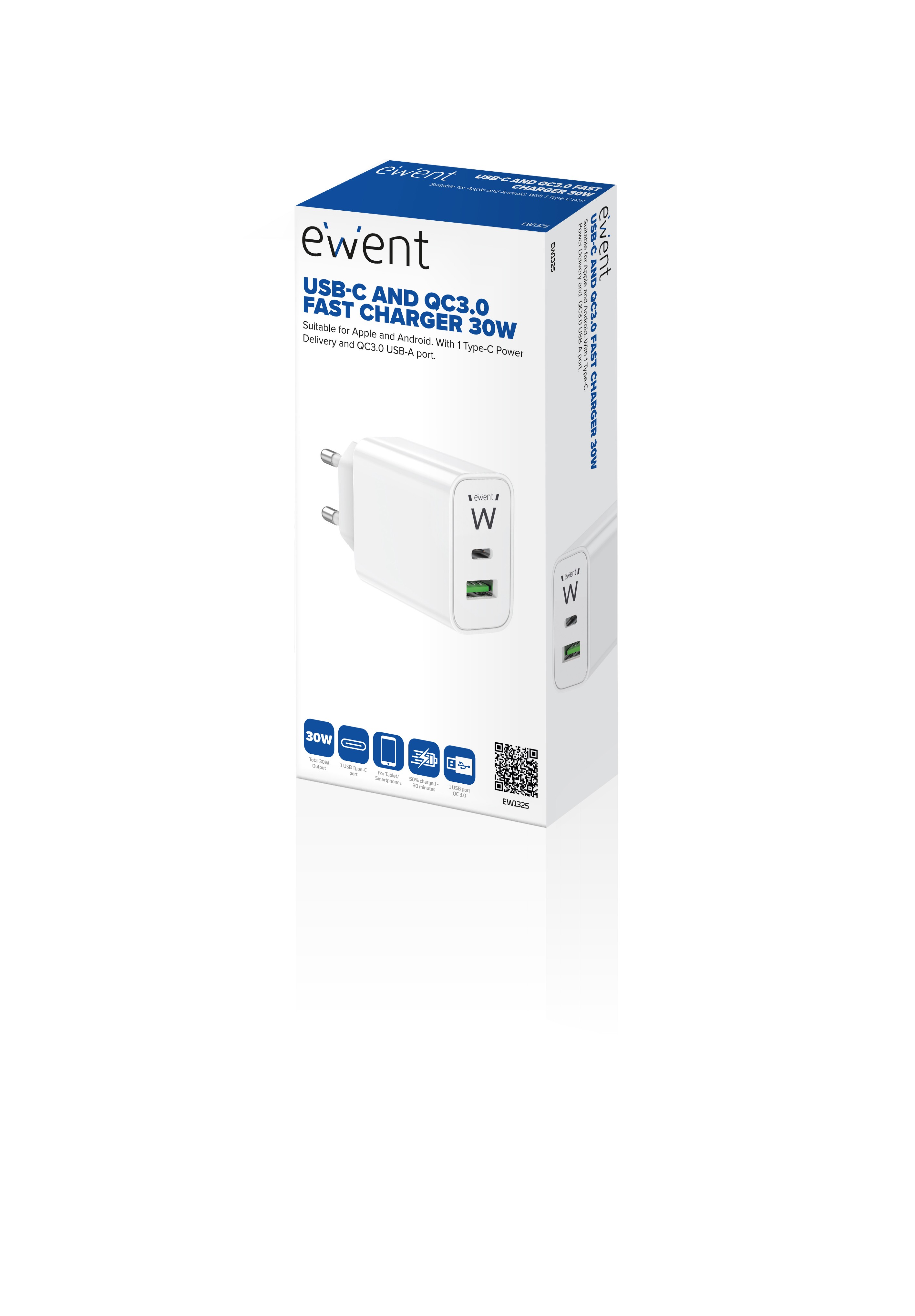Gli ultimi iPhone includono solo un cavo di ricarica. Un caricabatterie USB-C non è incluso. Il caricabatterie EW1325 USB-C e QC3.0 Fast Charger da 30 W progettato per caricare gli iPhone più recenti. Collega il tuo iPhone al caricabatterie rapido Ewent 30W USB-C e QC3.0 e il tuo smartphone verrà caricato fino al 65% in soli 30 minuti.