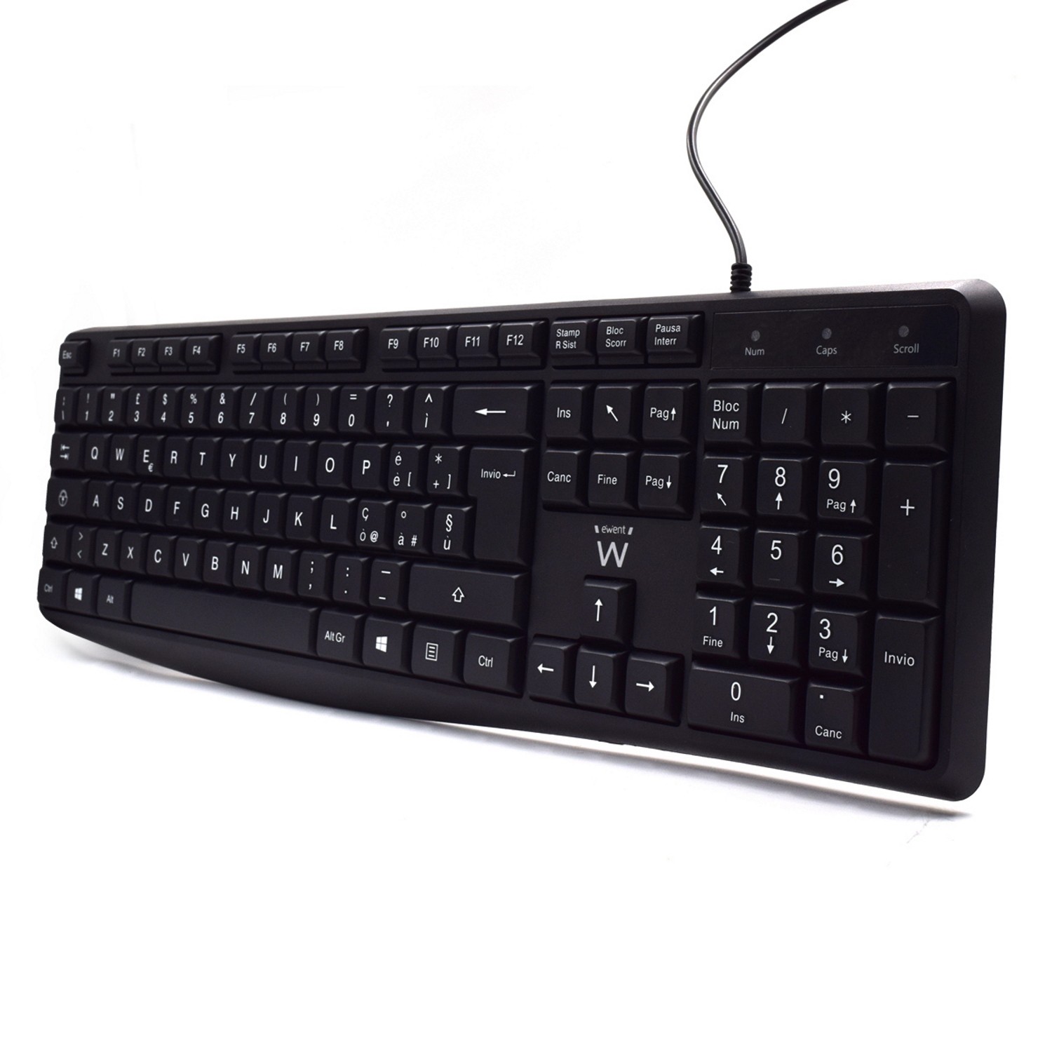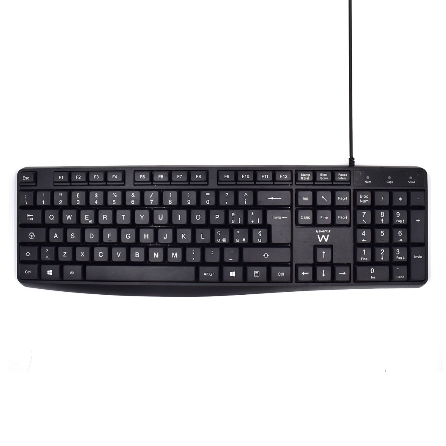 Ewent EW3000, Full-size (100%), Cablato, USB, Interruttore a chiave a membrana, QWERTY, Nero