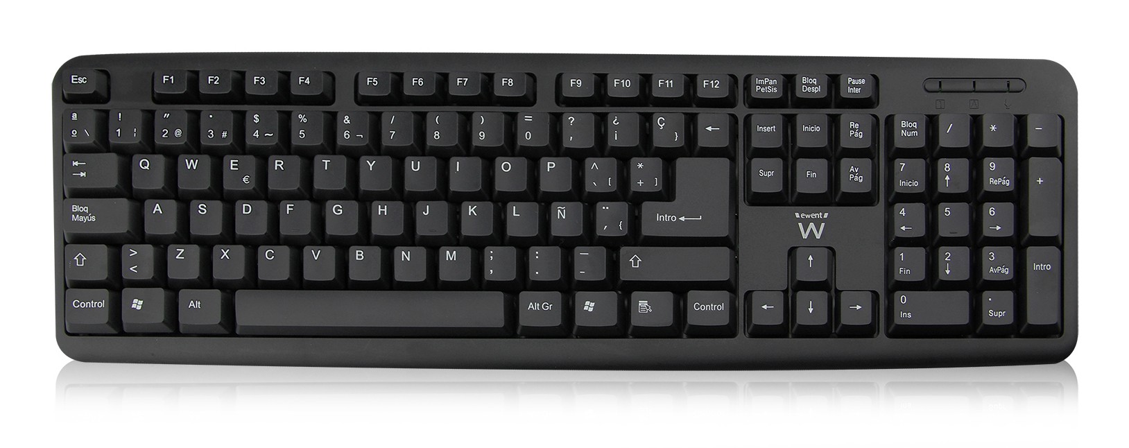 Ewent EW3109. Fattore di forma tastiera: Full-size (100%). Stile tastiera: Dritto. Tecnologia di connessione: Cablato, Interfaccia dispositivo: USB, Struttura tastiera: QWERTY. Lunghezza cavo: 1,4 m. Utilizzo raccomandato: Universale. Colore del prodotto: Nero