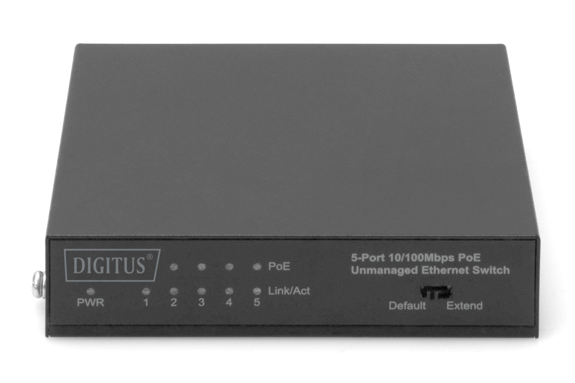 Digitus Switch PoE Fast Ethernet 4 porte PoE + uplink 1 porta, 60W budget PoE, Non gestito, Fast Ethernet (10/100), Full duplex, Supporto Power over Ethernet (PoE)