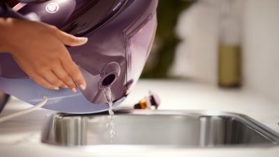 Una regolare decalcificazione protegge il tuo ferro, ne aumenta la durata e ti garantisce di ottenere sempre la miglior erogazione di vapore possibile. Il nostro esclusivo sistema Easy De-Calc raccoglie continuamente il calcare, mentre una spia di indicazione segnala quando svuotare il ferro. Per farlo, ti basta staccare la spina e lasciar fuoriuscire l'acqua e le particelle di calcare.