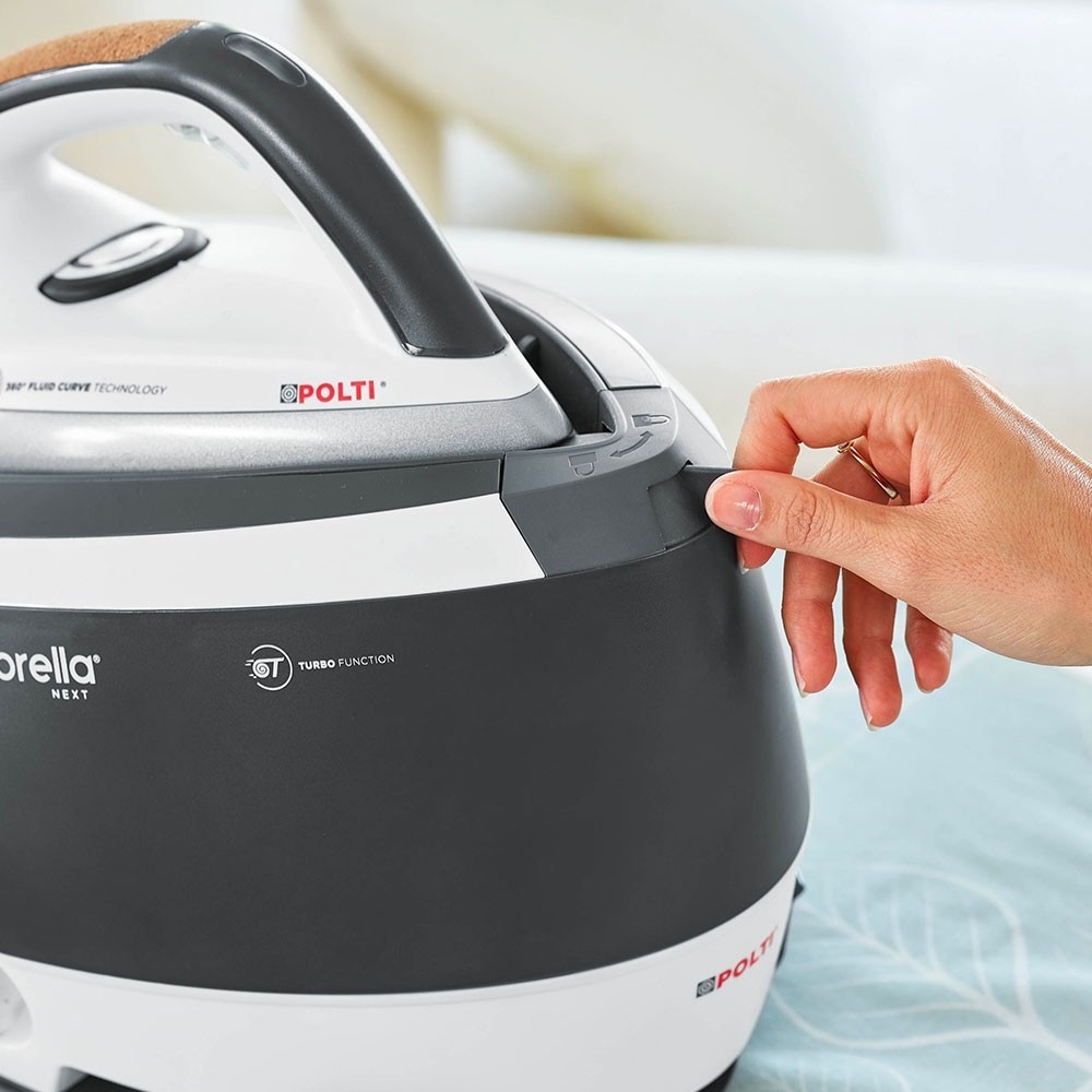Potrai stirare qualsiasi tipo di tessuto alla perfezione, risparmiando tempo e fatica grazie alla potente caldaia ad autonomia illimitata da 5,5 BAR e alla pompa da 15 BAR di Vaporella Next. Compatta e moderna, design 100% made in Italy. L'innovativa e brevettata 360° FLUID CURVE TECHNOLOGY della piastra in alluminio con rivestimento double ceramic garantisce ottimi risultati: stira senza fatica e in tutte le direzioni. Inoltre il getto di vapore della funzione TURBO ti permette di eliminare le pieghe più difficili dai tessuti pesanti. Il facile accesso alla caldaia per la pulizia ne assicura l'efficienza nel tempo. PRESTAZIONI AL TOP Potenza, performace e precisione: ecco la nuova Vaporella Next, 100% italian design. Scegli la funzione pià adatta ai tuoi capi e la temperatura corretta della piastra ruotando la manopola sul ferro. La potente caldaia da 5,5 BAR ti consente di ottenere ottimi risultati di stiratura in poco tempo. Per i tessuti più delicati, mantieni il ferro alla temperatura più bassa e stira senza premere il pulsante del vapore. STIRARE FACILE A 360° Con l'innovativa piastra arrotondata multidirezionale in alluminio con rivestimento double ceramic i risultati sono garantiti alla prima passata. L'esclusiva forma dai bordi arrotondati permette di stirare con facilità a 360° oltrepassando anche gli ostacoli come bottoni, colletti e tasche. La punta di gran precisione raggiunge anche le aree più difficili e distende facilmente anche le pieghe più ostinate grazie alla concentrazione del vapore, mentre i canali sulla piastra determinano una distribuzione omogenea del vapore per una stiratura senza fatica. FUNZIONE TURBO E DICI ADDIO ALLE PIEGHE RESISTENTI Stira senza fatica i tessuti più stropicciati e pesanti come il lino e i jeans grazie alla funzione TURBO: il potente getto di vapore ti permetterà di eliminare le pieghe più difficili in una sola passata. VAPORE ILLIMITATO Il sistema di riempimento continuo di Vaporella Next consente di stirare per lunghe sessioni di lavoro senza interruzioni. Quando si accende la spia rossa sulla macchina significa che l'acqua nel serbatoio è terminata, puoi riempirlo in qualsiasi momento grazie al pratico sportellino laterale. CALC CLEANING: PRESTAZIONI CHE DURANO NEL TEMPO L'accesso laterale direttamente in caldaia consente di effettuare le operazioni di pulizia in modo semplice e veloce, preservando Vaporella Next dal calcare, aumentandone l'efficienza ed assicurandone le prestazioni nel tempo. INSERTO IN SUGHERO, MASSIMO COMFORT! L'inserto in sughero traspirante presente sul manico, unito all'innovativa forma del ferro, rendono la stiratura semplice e piacevole. PRATICO TRASPORTO Terminato l'utilizzo, riporre Vaporella Next è semplicissimo: i pratici ganci laterali per il monotubo e il blocca ferro ti consentono di trasportare e appoggiare facilmente la macchina. SPEGNIMENTO AUTOMATICO PER MAGGIORE SICUREZZA Stai stirando ma è suonato il campanello e devi aprire la porta? Nessun problema! Vaporella Next si spegne automaticamente dopo 10 minuti di inutilizzo, per riattivare la macchina sarà sufficiente premere il tasto corrispondente al programma di stiratura che desideri utilizzare. DESIGN MADE IN ITALY Potenza, performance e design: ecco Vaporella Next. Il design made in Italy che dà al prodotto una forma moderna e compatta unita al pannello comandi intuitivo, rendono il prodotto una certezza nelle prestazioni.